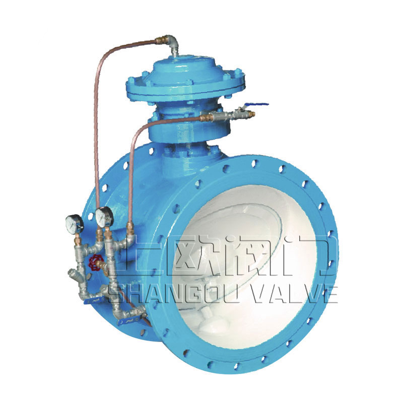 9、適應(yīng)性強(qiáng):產(chǎn)品有膜片式與活塞式分別適用于各類工況與介質(zhì)。外控組件中的特殊過濾器能有效過濾污水中的雜質(zhì)顆粒,保證進(jìn)入膜片腔或活塞缸內(nèi)介質(zhì)為清潔液體,該過濾裝置具有自沖洗功能,旁通進(jìn)口端設(shè)有排渣裝置,可手動(dòng)定期排渣。調(diào)節(jié)型可根據(jù)工況要求,采用手動(dòng)或者電動(dòng)控制開度進(jìn)行流量調(diào)節(jié)。